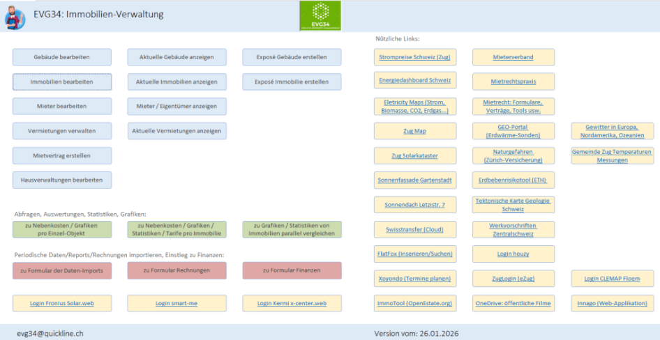 Dies ist die Webseite zur Verwaltung von privaten Liegenschaften der Familie Müller (Vermietungen, Nebenkosten-Abrechnungen, Auswertungen/Reports, Finanzierungen, Provider-Rechnungen usw.)